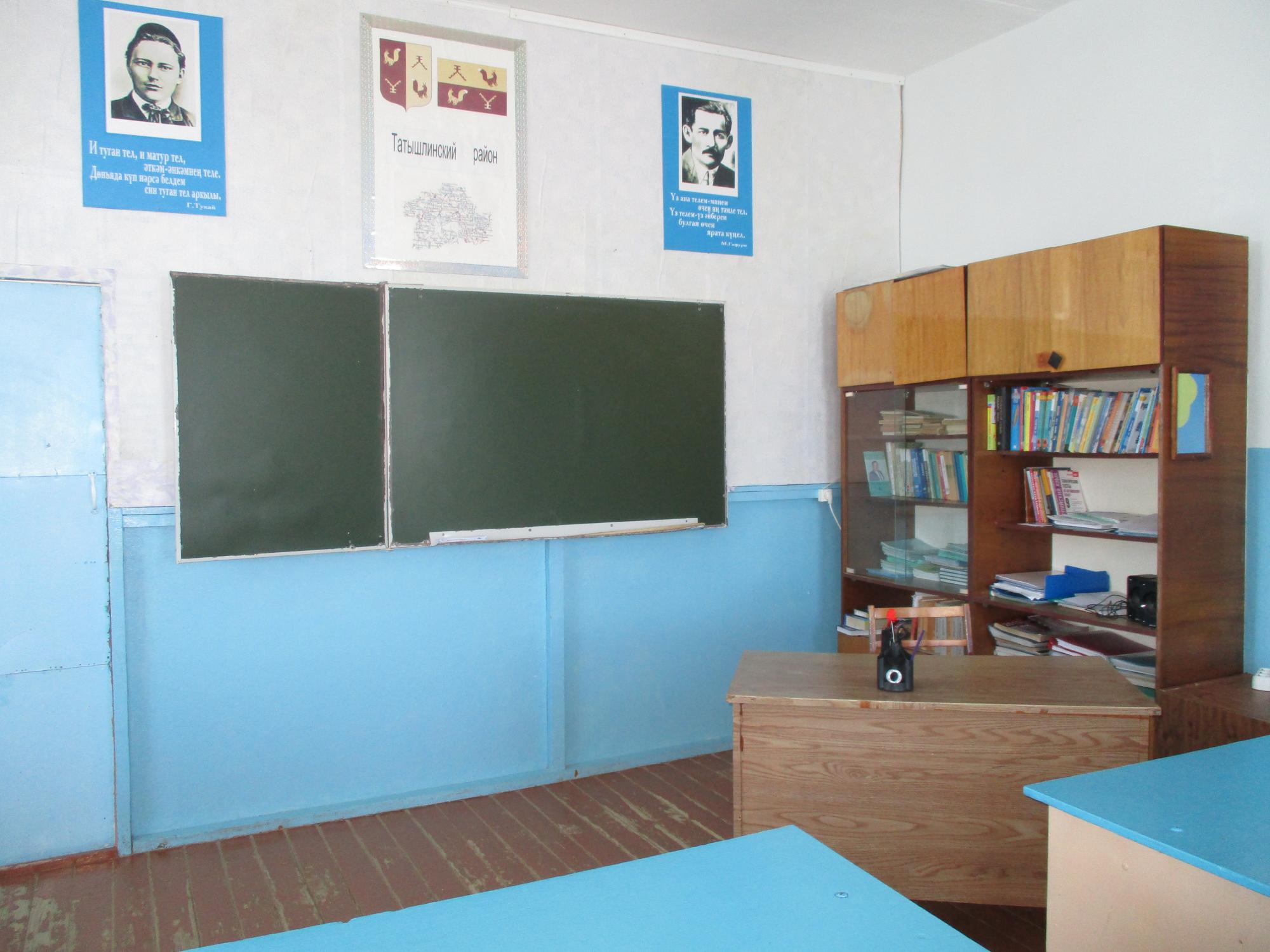 школы. В классе находится 1 учительский стол , 1 меловая доска и 3 шкафа для