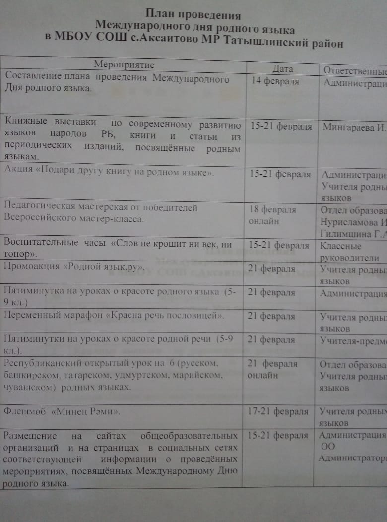 С 14 по 21 февраля в МБОУ СОШ с.Аксаитово проходят мероприятия, посвященные Дню родных языков.