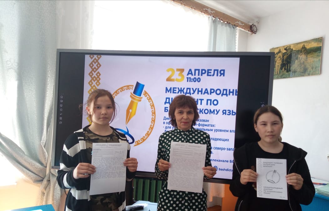 «Башҡорт теленән халыҡ-ара диктант-2022” акцияһы үтеп тә китте. Быйыл акция онлайн һәм оффлайн форматта үтһә лә, беҙҙең мәктәп уҡыусылары, уҡытыусылары, мәктәп хеҙмәткәрҙәре ситтә ҡалманы.Сараға ҙур теләк менән ҡатнашты. Диктант өс йүнәлештә яҙылды. Уҡыусылар һәм уҡытыусылар күберәк икенсе һәм өсөнсө йүнәлеште һайланылар. Акцияла ҡатнашыусыларға сертификаттар тапшырылды.