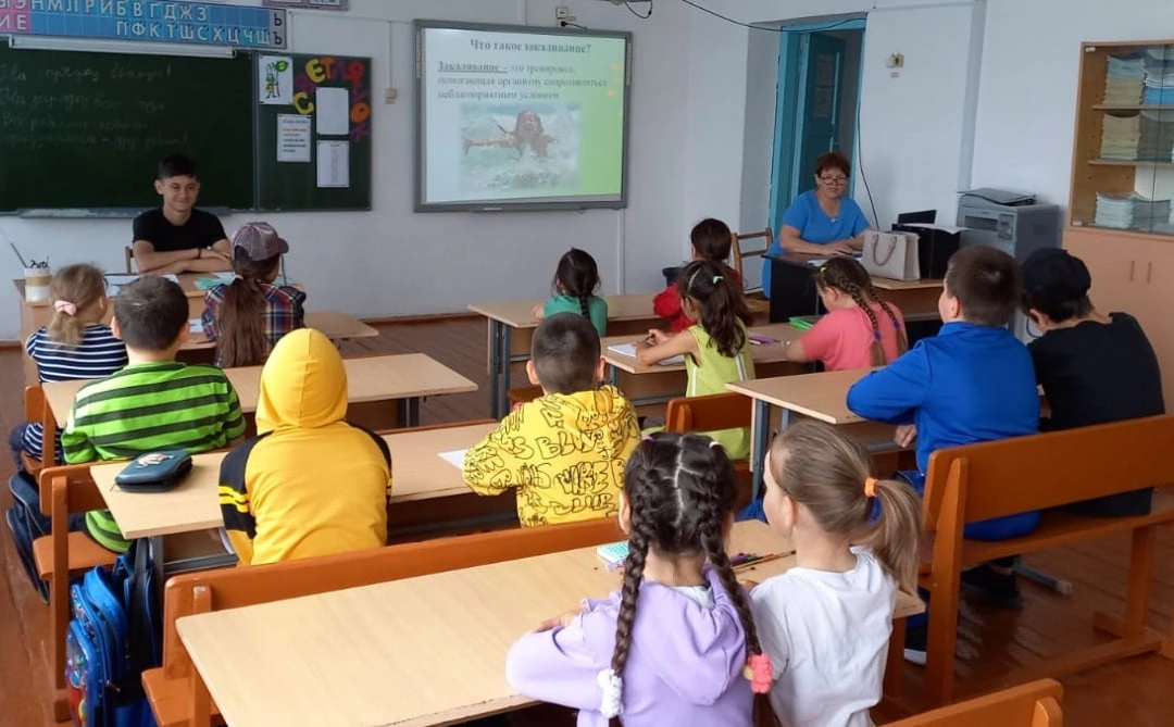 При беседе с фельдшером СВА с. Аксаитово Гарифуллиной А.Ф .дети узнали о лесных клещах и о профилактике клещевого энцефалита.