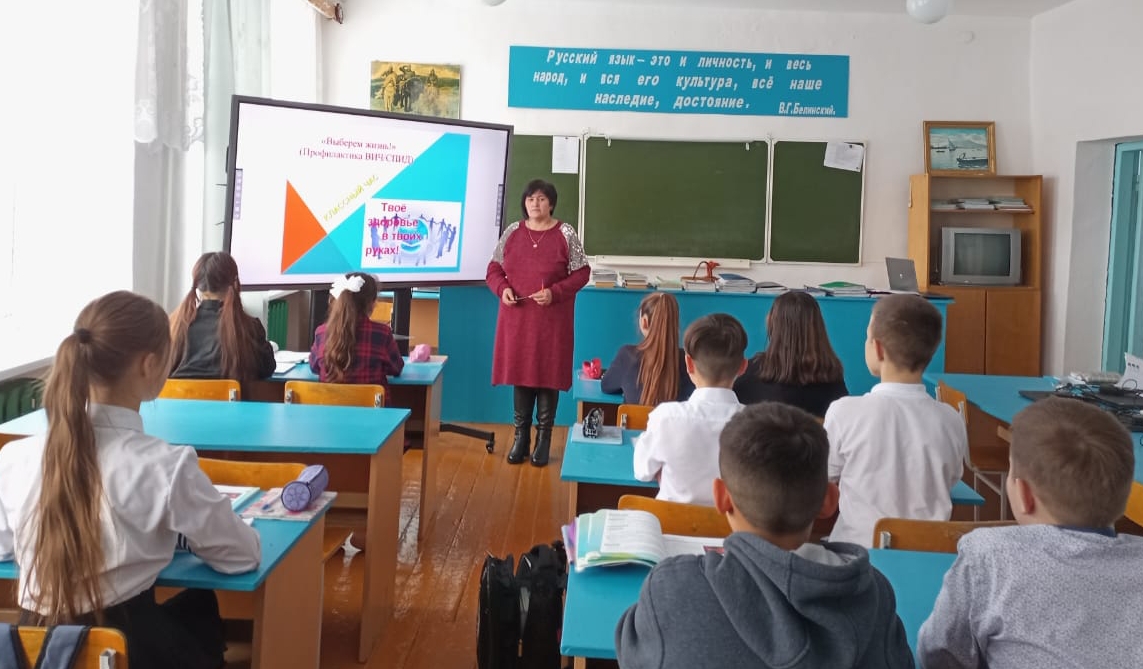 В рамках ежегодной Всероссийской акции по борьбе с ВИЧ-инфекцией "СТОПВИЧ/СПИД", приуроченной ко Всемирному дню борьбы со СПИДом, 01.12.22. учитель биологии Ахметова.И.Г. провела беседу на тему "Твое здоровье в твоих руках". Среди старшеклассников провели распространение памяток для учащихся.