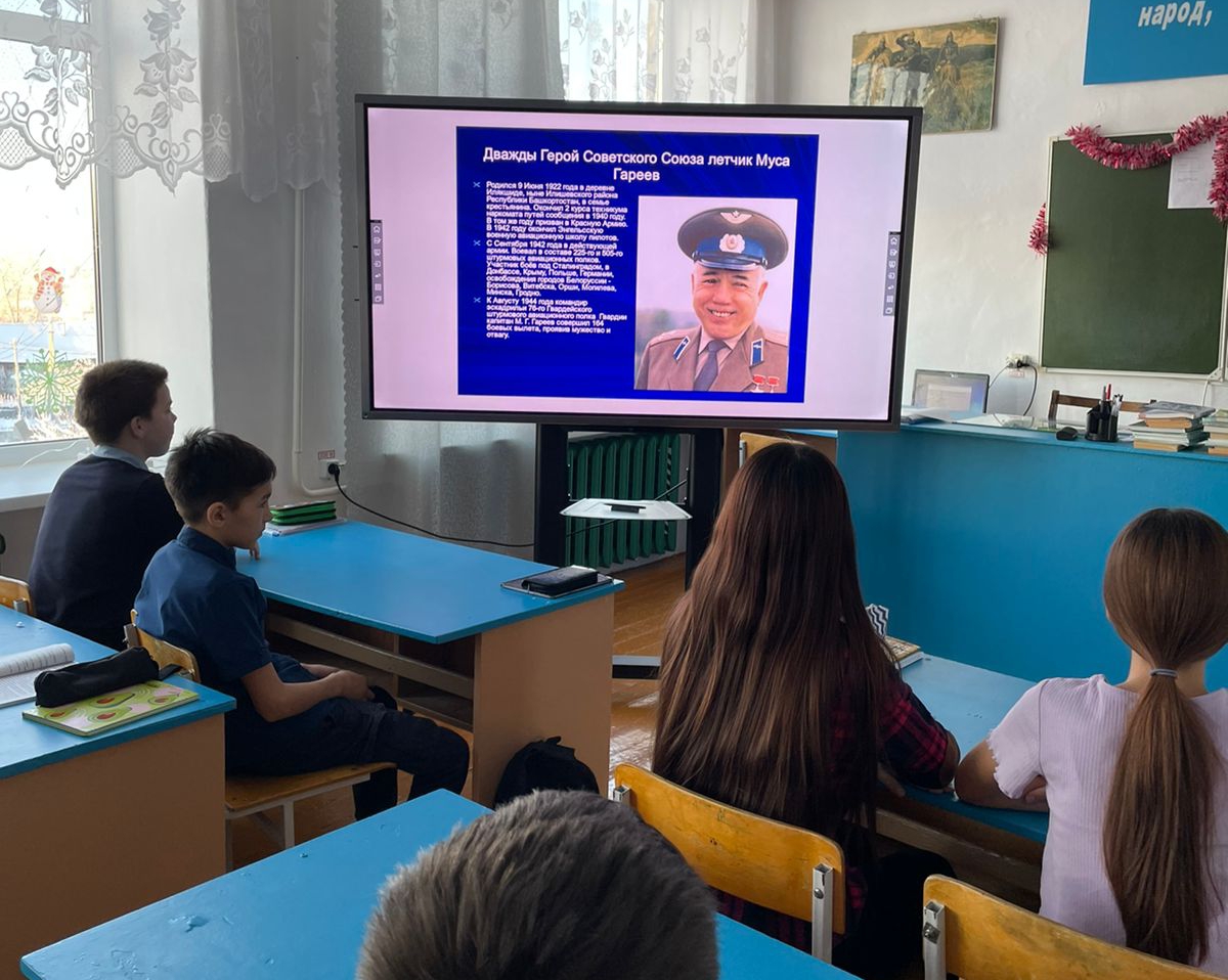 9 декабря в Российской Федерации отмечается День Героев Отечества, являющийся важной датой по сохранению и популяризации исторической памяти о ратных подвигах героев нашей страны. В 6,7 классах был проведены классные часы на заданную тематику. В ходе классного часа вспомнили трагические страницы Великой Отечественной Войны , мужество и самопожертвование всего народа и героизм отдельных личностей, таких как Муса Гареев, Иван Кожедуб, Куддус Латыпов и других во имя Победы.