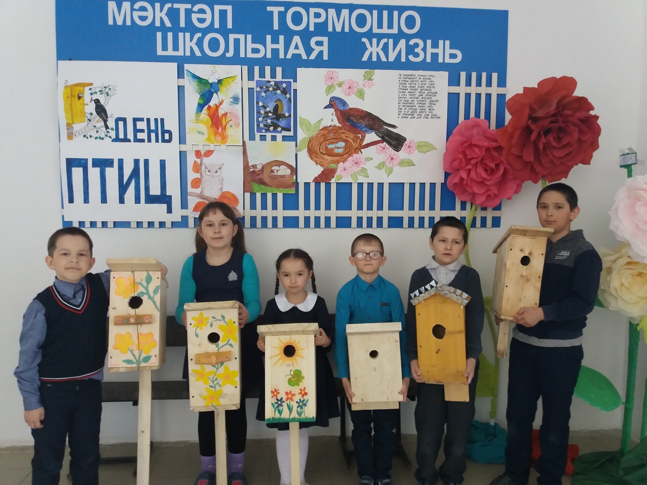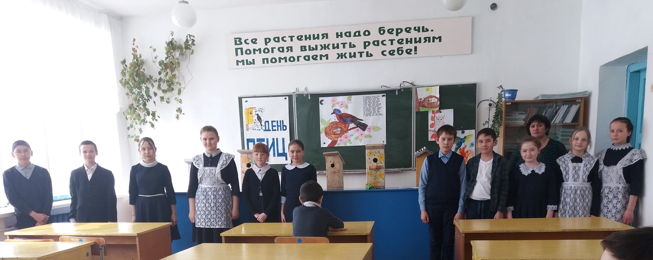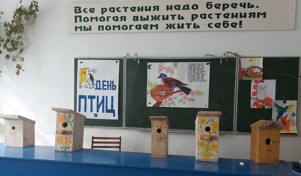1 апреля провели классные часы на тему «Птицы наши друзья» в начальных классах (классные руководители Асатова.Ф.Ф 1 кл., Ильясова.Л.Р 2 кл., Ситдикова.Д.С. 3 кл., Зарифьянова.Г.Д 4 кл.). Начальное звено очень активно участвовало в конкурсе на лучший скворечник. Победителями стали ученица 1 класса Ильясова Халида, 4 класса Суфиянова Энйе и 2 класса Суфиянов Ильяс.
