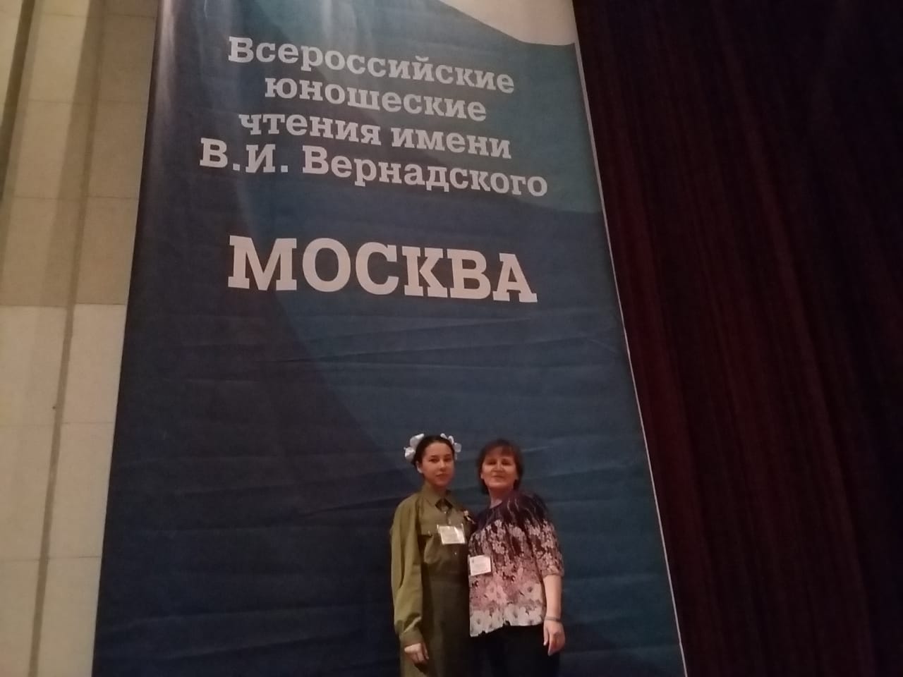 С 8 по 12 апреля 2019 года в Москве, в Президиуме Российской академии наук прошли Всероссийские юношеские Чтения имени В.И. Вернадского, участниками которых стали более 1000 школьников, представители 65 субъектов Российской Федерации и 5 стран мира. Отрадно, что среди них была и ученица МБОУ СОШ с. Аксаитово. Ученица 8 класса Гульназ Галимова и ее руководитель исследовательской работы – учитель иностранных языков Радиля Хабипова удачно прошли два этапа заочного тура конкурса и были приглашены на очный этап в Москву. Гульназ достойно представила жюри свой проект и стала призером – награждена дипломом 1 степени. Кроме главного диплома Гульназ награждена в дополнительной номинации «Приз зрительских симпатий”.