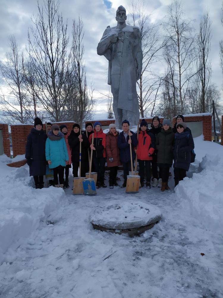 Очистка от снега памятника воинам Великой Отечественной войны