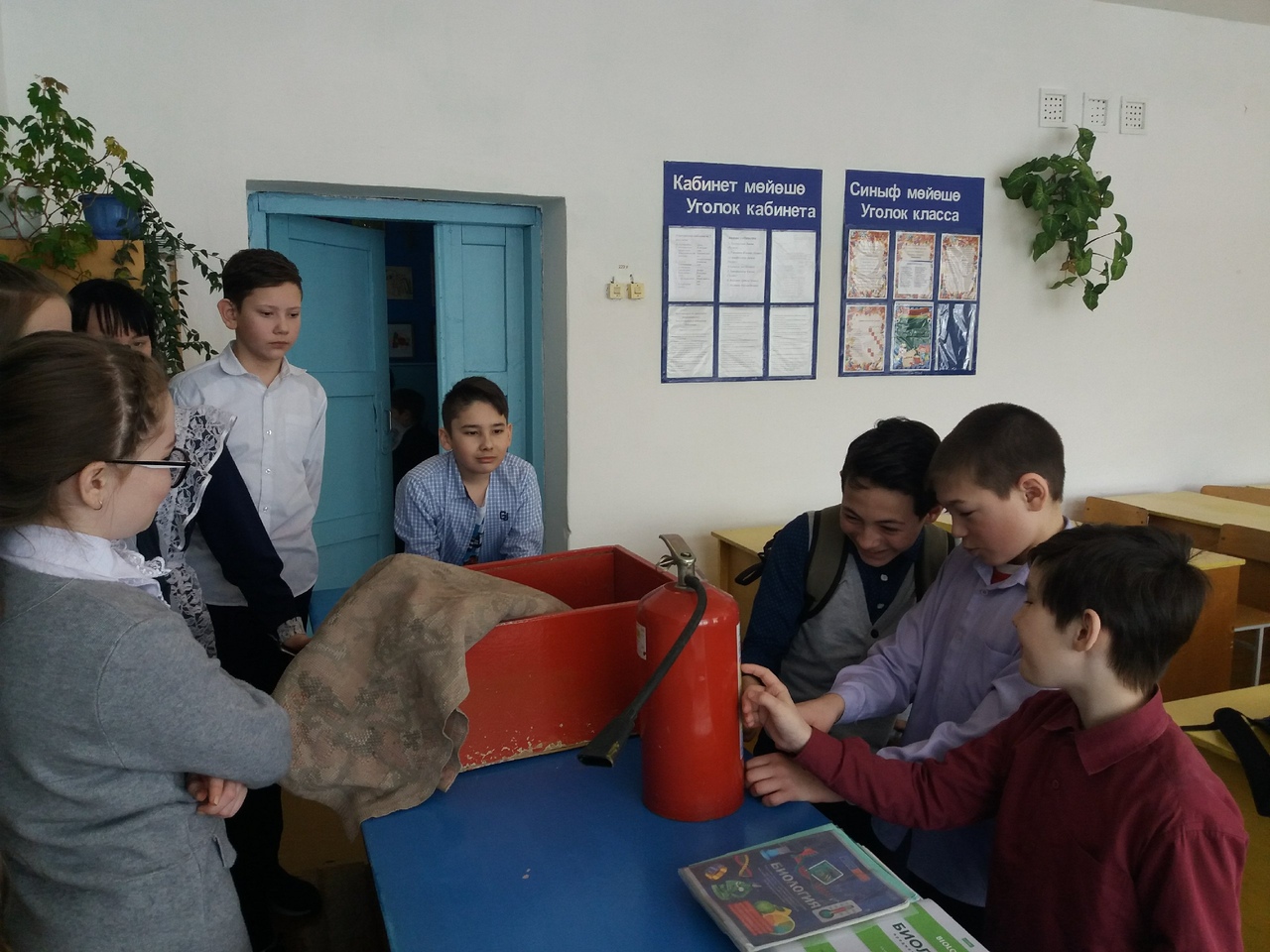 В ходе классного часа учащиеся научились основным правилам безопасности при ЧС связанных с огнем, пользоваться огнетушителем, правильно использовать песок и одеяло.