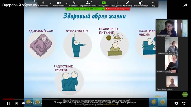С целью формирования ценностного отношения учащихся к своему здоровью с обучающимися 11 класса Гаязова З.И. провела классный час «С чего начать здоровый образ жизни» В ходе классного провели дискуссию на данную тему, тест «Твое здоровье». Итогом занятия стала схема «Здоровый образ жизни»: