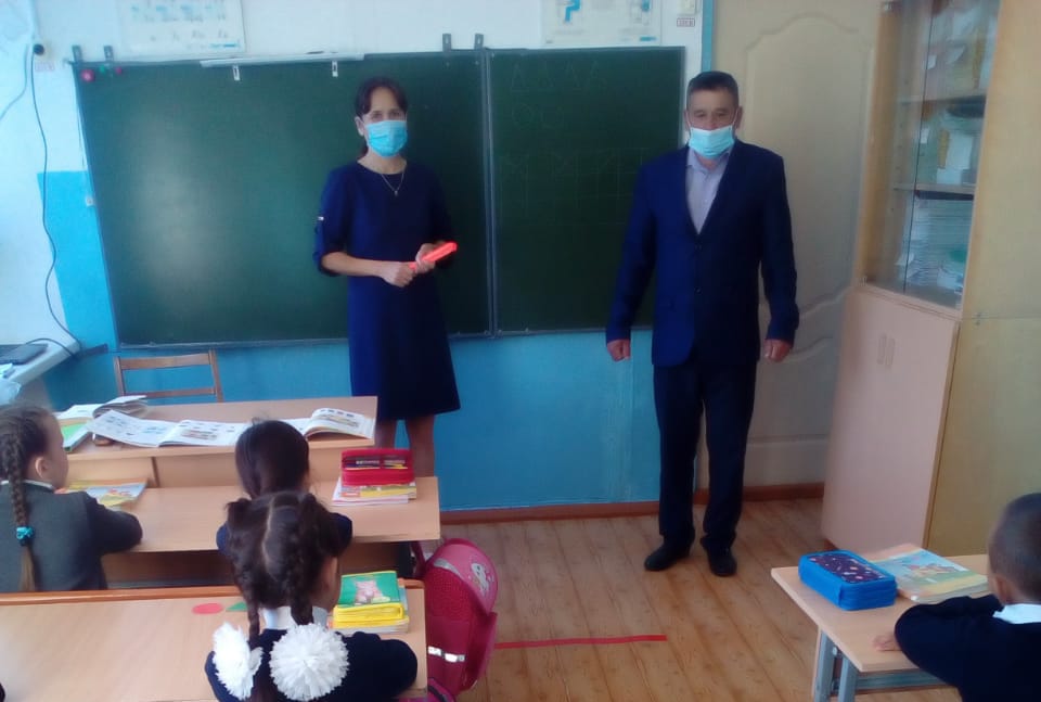 Директор школы Лукманова А.З. и ответственный за безопасность дорожного движения Миннигулов И.Н. в 1 классе провели профилактическую беседу