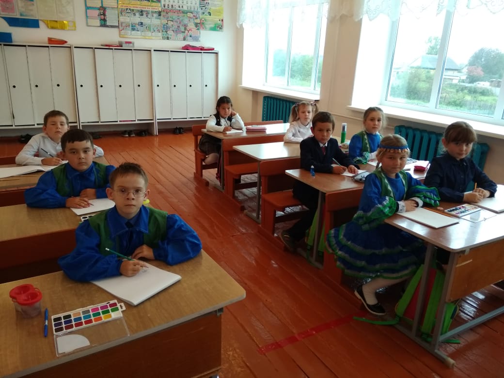 В рамках Дня национального костюма во 2 классе был проведен классный час на тему "Национальные костюмы народов РБ". В ходе мероприятия учительница рассказала об искусстве кроя костюма, особенностях костюма башкир, ,также была показана презентация "Башкирский орнамент". В конце обучающиеся нарисовали "Башкирский национальный костюм".