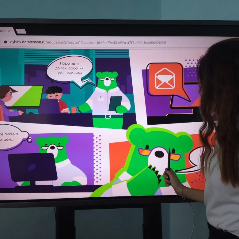 В конце урока с помощью интерактивного тренажера обучающиеся попробовали себя в роли кибердетективов и исследовали необычные ситуации в сети.