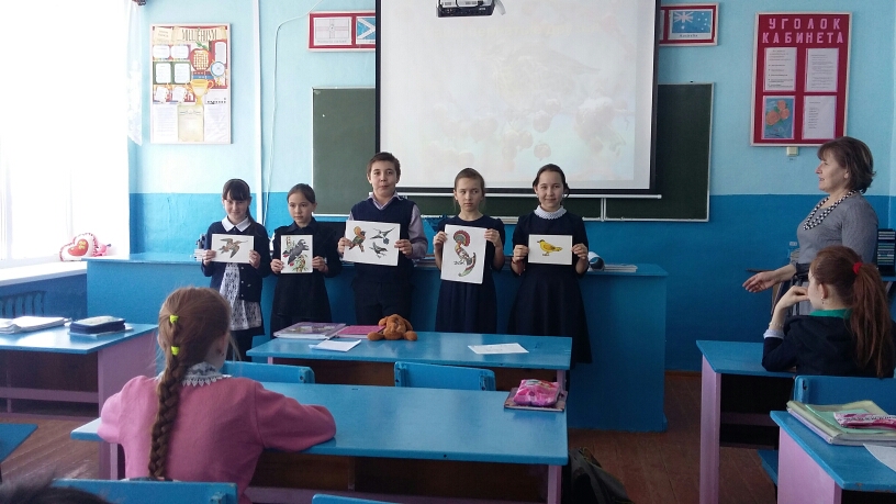 В рамках районной экологической акции «Пернатые друзья моего Башкортостана» 20 марта в 5 классе был проведен классный час «В мире птиц» в форме устного экологического журнала. Ребята узнали, что впервые День птиц был проведен в 1894 году в Соединенных Штатах Амеpики в небольшом городке Оил-Сити, который находится в штате Пенсильвания, организованный местным школьным учителем для своих учеников, и что с 1906 года в мире начали отмечать Международный День птиц. Была проведена игра- викторины «Птицы наших лесов» . Дети отвечали на вопросы викторины, отгадывали загадки. В ходе классного часа дети узнали о зимующих и перелетных птицах и о том, чем они могут помочь пернатым, ознакомились с разнообразием пернатых обитателей, научились различать их по силуэту и рисовать закрытыми глазами, учились по голосам определять знакомых им птиц.