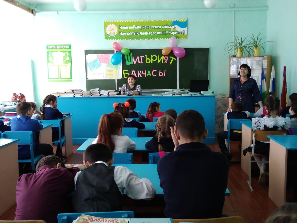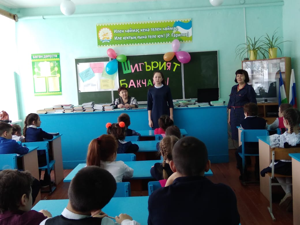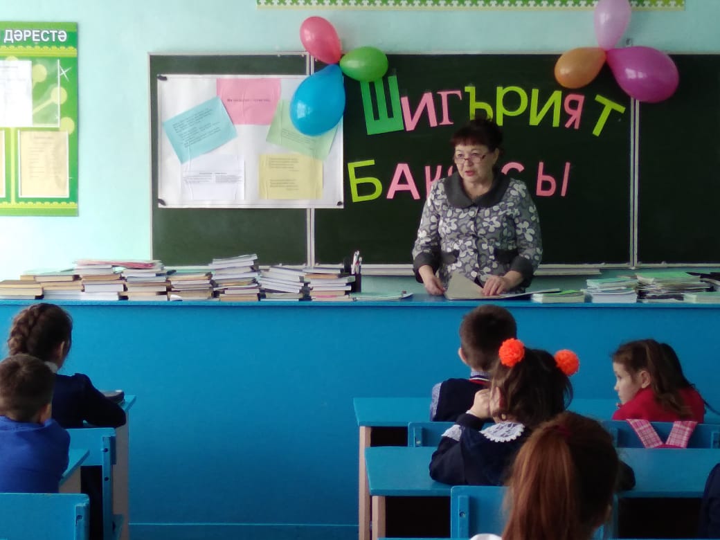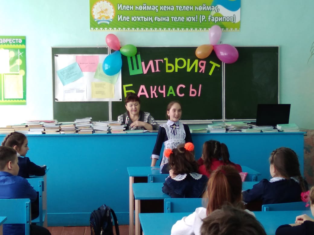 В школе становится доброй традицией проводить литературные встречи, посвящённые творчеству наших земляков. Одна из таких встреч прошла 7 марта «Шигърият бакчасында». Она была посвящена местной поэтессе Хузиной Филарисе Закиевне.