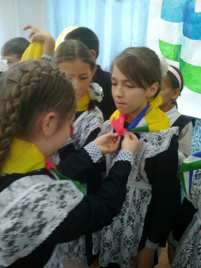 Накануне Дня Республики в МБОУ СОШ с.Аксаитово прошел прием в пионеры Башкортостана. Мы приняли обучающихся 5 класса в славную, дружную пионерскую семью. Мероприятие происходило в торжественной обстановке, прозвучали гимны Российской Федерации и Республики Башкортостан. Заместитель директора по ВР Ильясова Л.Р. рассказала о российском движении школьников, старшие активисты-пионеры читали стихотворения будущим пионерам. 29 обучающиеся произнесли «Пионерскую клятву». Они торжественно поклялись любить свою Родину, бережно хранить традиции добрых дел, всегда выполнять Законы своей организации, быть честным, добрым, справедливым, жить на пользу и радость людям. Право повязать пионерские галстуки было предоставлено отличникам и ударникам, а также учителям нашей школы. В финале мероприятия юные пионеры исполнили гимн пионеров «Взвейтесь кострами», символизирующую силу дружбы, важность коллективизма. Мы, надеемся, что этот праздник надолго запомнится ребятам и положит начало их активной общественной деятельности. Их добрые дела не останутся незамеченными обучающимися школы и жителями села.