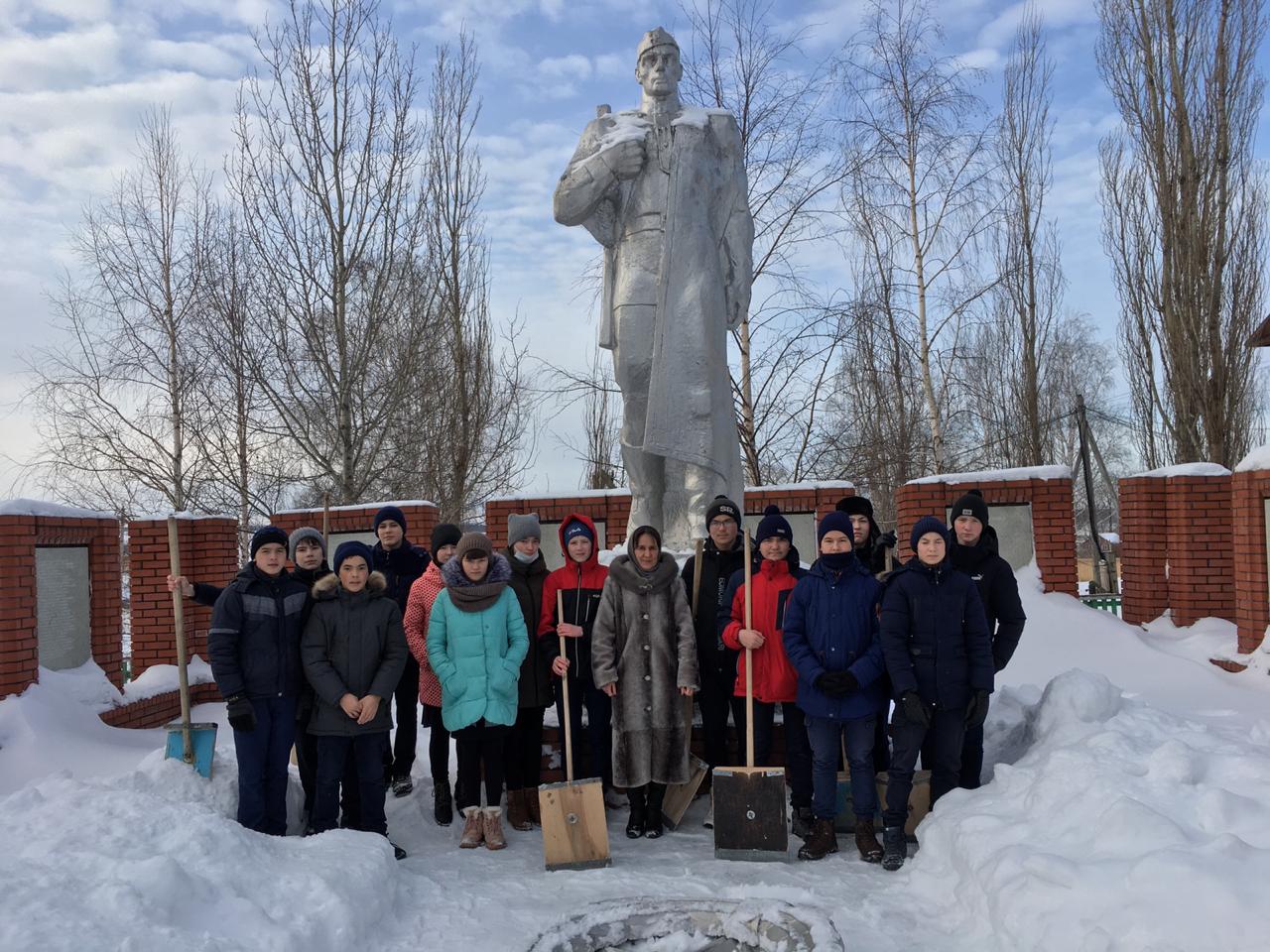 Школьники под руководством директора школы Лукмановой А.З. провели работу по очистке памятника воинам Великой Отечественной войны от снега. Ведь герои живы, пока жива память о них. Бережное отношение к памяти предков – давняя традиция учащихся и учителей школы. Ребята работали очень дружно, и закончили работу быстро.