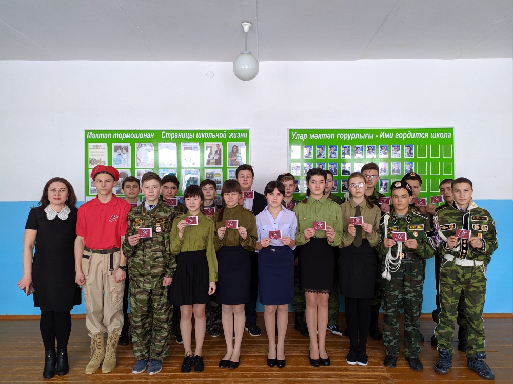 14 февраля в МБОУ СОШ с.Аксаитово состоялась торжественная церемония посвящения учащихся 8 класса в ряды Всероссийского детско-юношеского военно-патриотического общественного движения «ЮНАРМИЯ». В рамках месячника по военно-патриотическому воспитанию, оборонно-массовой и спортивной работе 14 февраля 19 обучающихся шшолы вступили в ряды ЮНАРМИИ.
