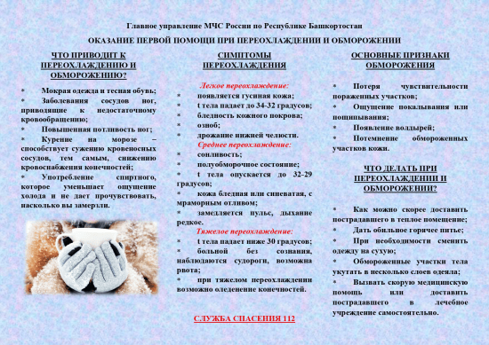 Памятка "Оказание первой помощи при переохлаждении и обморожении"