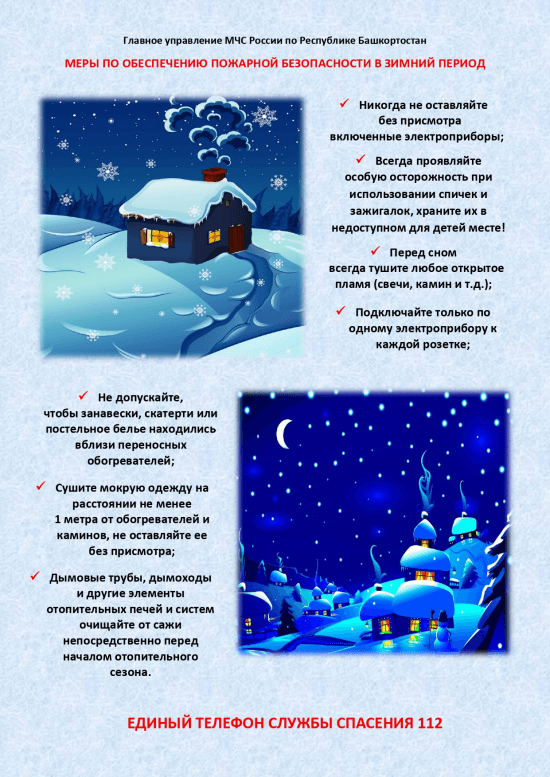 Памятка "Меры по обеспечению пожарной безопасности в зимний период"